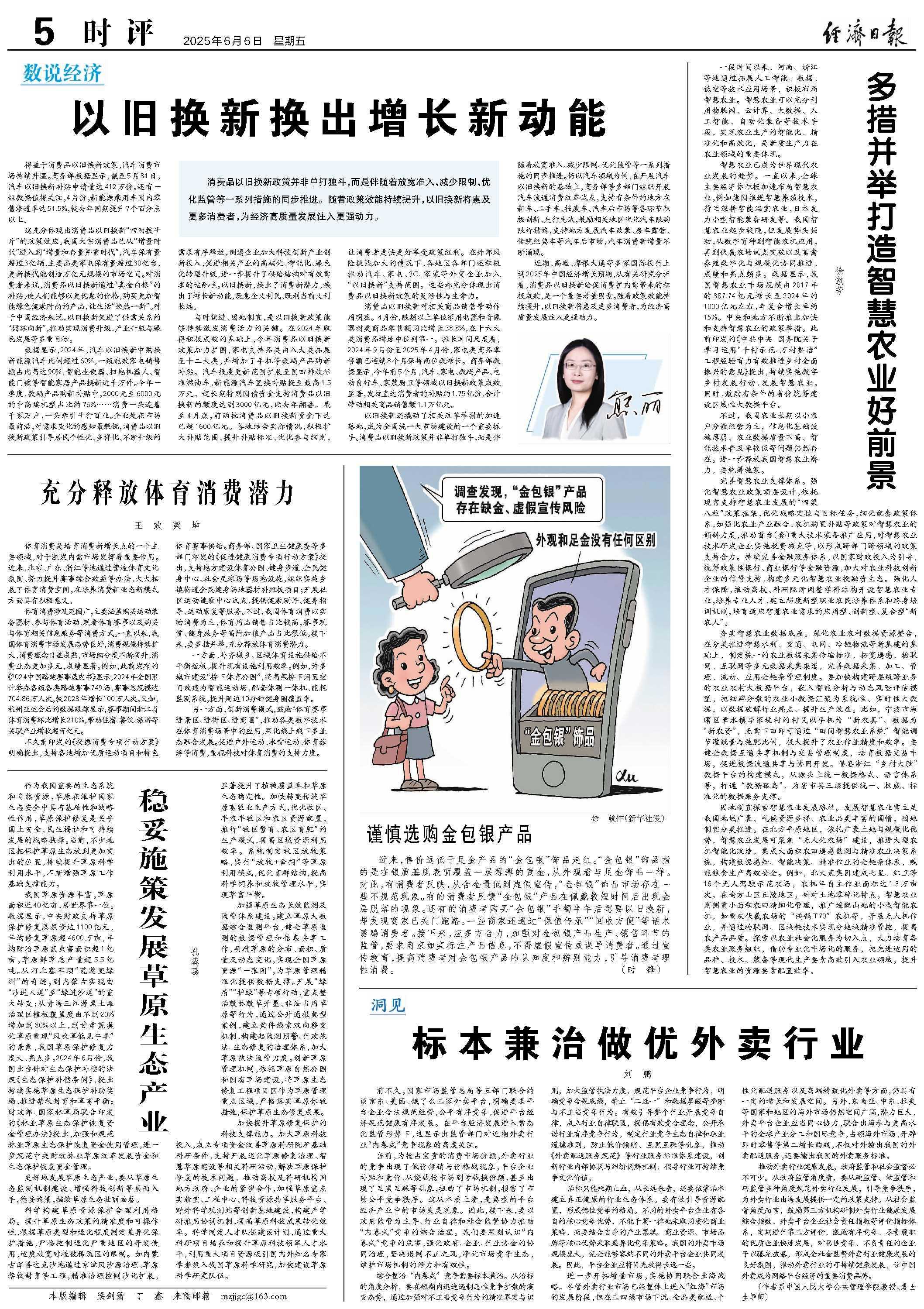 数据显示,2024年,汽车以旧换新中购换新能源汽车比例超过60%,一级能效家电销售额占比高达90%,智能坐便器、扫地机器人、智能门锁等智能家居产品换新近千万件。今年一季度,数码产品购新补贴中,2000元至6000元的中高端机型占比约76%……消费一头连着千家万户,一头牵引千行百业。企业处在市场最前沿,对需求变化的感知最敏锐,消费品以旧换新政策引导居民个性化、多样化、不断升级的需求有序释放,倒逼企业加大科技创新产业创新投入,促进相关产业的高端化、智能化、绿色化转型升级,进一步提升了供给结构对有效需求的适配性。以旧换新,换出了消费新潜力,换出了增长新动能,既惠企又利民、既利当前又利长远。