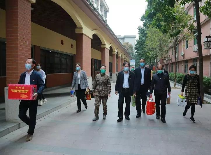 与此同时,统筹发动各地市双拥机构提前谋划,主动与驻地部队(医院)对接,及时掌握驻粤部队一线军队医院人员家庭情况,摸清底数,于2月中下旬启动对驻粤部队抗击新冠肺炎疫情一线医务人员家属的慰问和帮难解困活动,稳固后方,让前线安心。收到全国双拥办通知后,立即将通知精神传达给双拥成员单位和基层街道社区,形成横向到边,纵向到底的全方位服务保障网络,使贯彻落实“五个一”活动更加高效、更加到位。指导各地市结合实际推出“您为国我护家”“你们在‘第一线’冲锋,我们在‘大后方’帮你送菜带娃”“青春情暖——白衣战士致敬行动”等系列双拥关爱活动。同时紧急动员社会力量,引导爱心企业、爱心人士积极参与,凝聚起军民同心抗击疫情的新时代伟力。《中国双拥》年度人物、羊城最美拥军优属标兵、广州医药集团有限公司董事长李楚源积极参加慰问,代表广州国有企业表达拥军情怀;全国爱国拥军模范谢仲馀等一批爱心企业、爱心人士迅速响应参与慰问活动,表达千万广州百姓对人民子弟兵的敬意。
