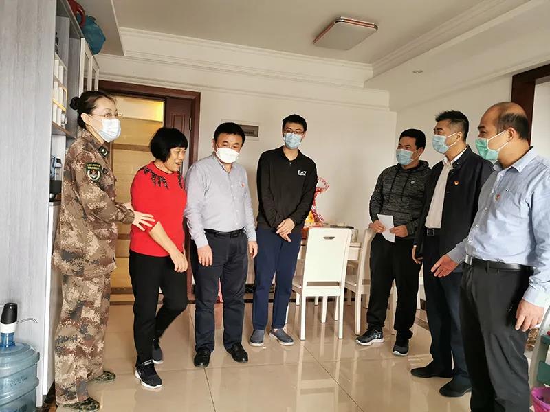 湛江市委常委陈光祥、军分区司令员张彬、政治委员黄家忠、副市长崔青等专程赴南部战区海军第一医院慰问驰援湖北医疗队员家属,赠送慰问信、慰问金和慰问品;为助力抗疫一线医务人员的孩子在疫情防控期间停课不停学,湛江市妇联、市邮政管理局、中国邮政集团有限公司湛江市分公司联合开展“好书为伴”活动,根据孩子的年龄及学习情况选购书籍,免费赠送部队医疗队员的33名孩子每人1箱书籍。