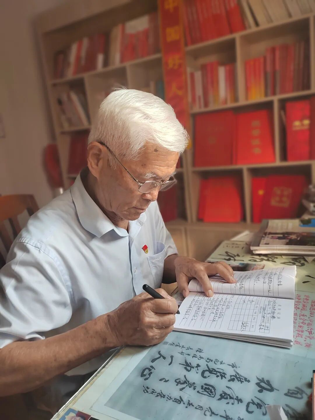 有一次,为了寻找一份关于中国共产党第七次全国代表大会的原始资料,姚华亮听闻邻县废品站有一批旧书报,当天就踩着三轮车冒雨赶去。整整4个小时,钻在旧书堆里忘我翻找的姚华亮,眼睛开始干涩发花,腰背酸痛不已。那篇记录中共七大相关内容的文章,好像凭空消失了。