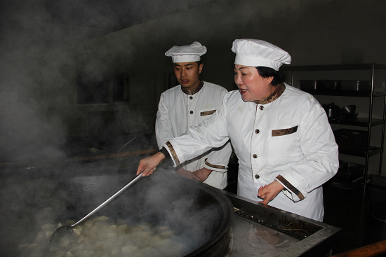 一如南方过年吃汤圆,北方过年,饺子就是必备品。在哨所的食堂,朱妈妈和战士们一起开始准备过年饺子。拌馅、和面、擀皮,大家分工合作,一边拉着家常,一边包着饺子,其乐融融的气氛,俨如家的温暖。几个初次在边防线上过春节的新战士,在家从来没有动手包过饺子,一个个拿着战友擀好的饺子皮,不知从何下手,朱妈妈就像母亲对儿子一样手把手地教他们包饺子。