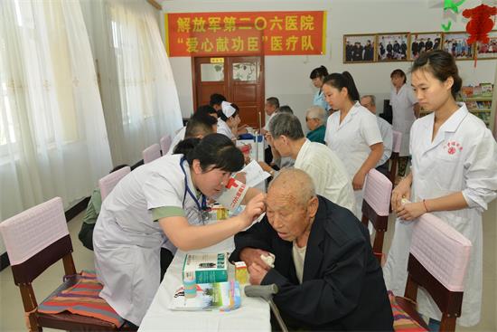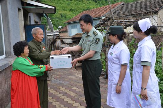 206医院驻地通化市周边集居着1200余名参加过抗日、解放和抗美援朝战争的参战复原老兵。三年来,他们坚持定期为这些“共和国功臣”进行巡诊,发放健康保健箱、电子血压计、体温计等常用医疗设备,印发急救电话服务卡。同时,他们还先后为15名家庭比较困难的减免医疗费用10万余元,并收集整理老兵战斗故事,作为培育新一代“四有”革命军人的鲜活教材。
